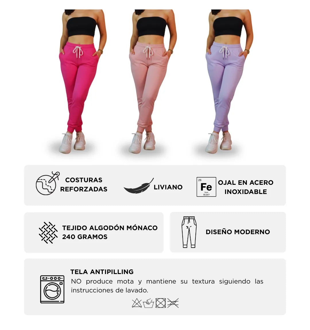 Nuestros productos están fabricados con Algodón Mónaco de 240 gramos, un material de alta calidad que ofrece múltiples beneficios, para nuestros hoodies y joggers: